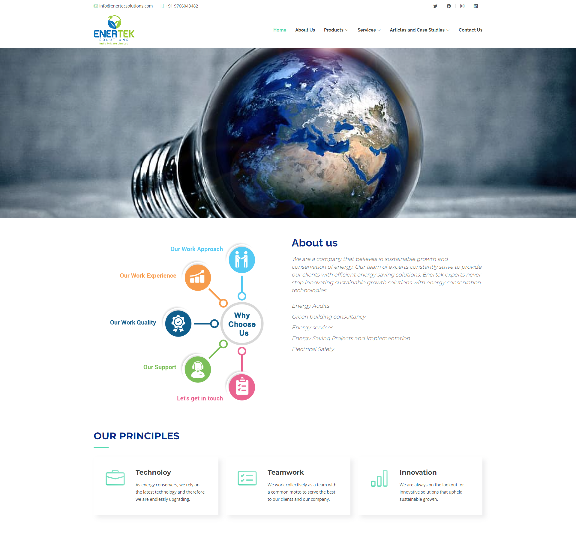 To enhance their outreach, a modern website was developed for Enertek, showcasing their innovative offerings and expertise. Their in-house products exemplify energy saving and conservation, while dedicated support for material management and relocation streamlines operations.
